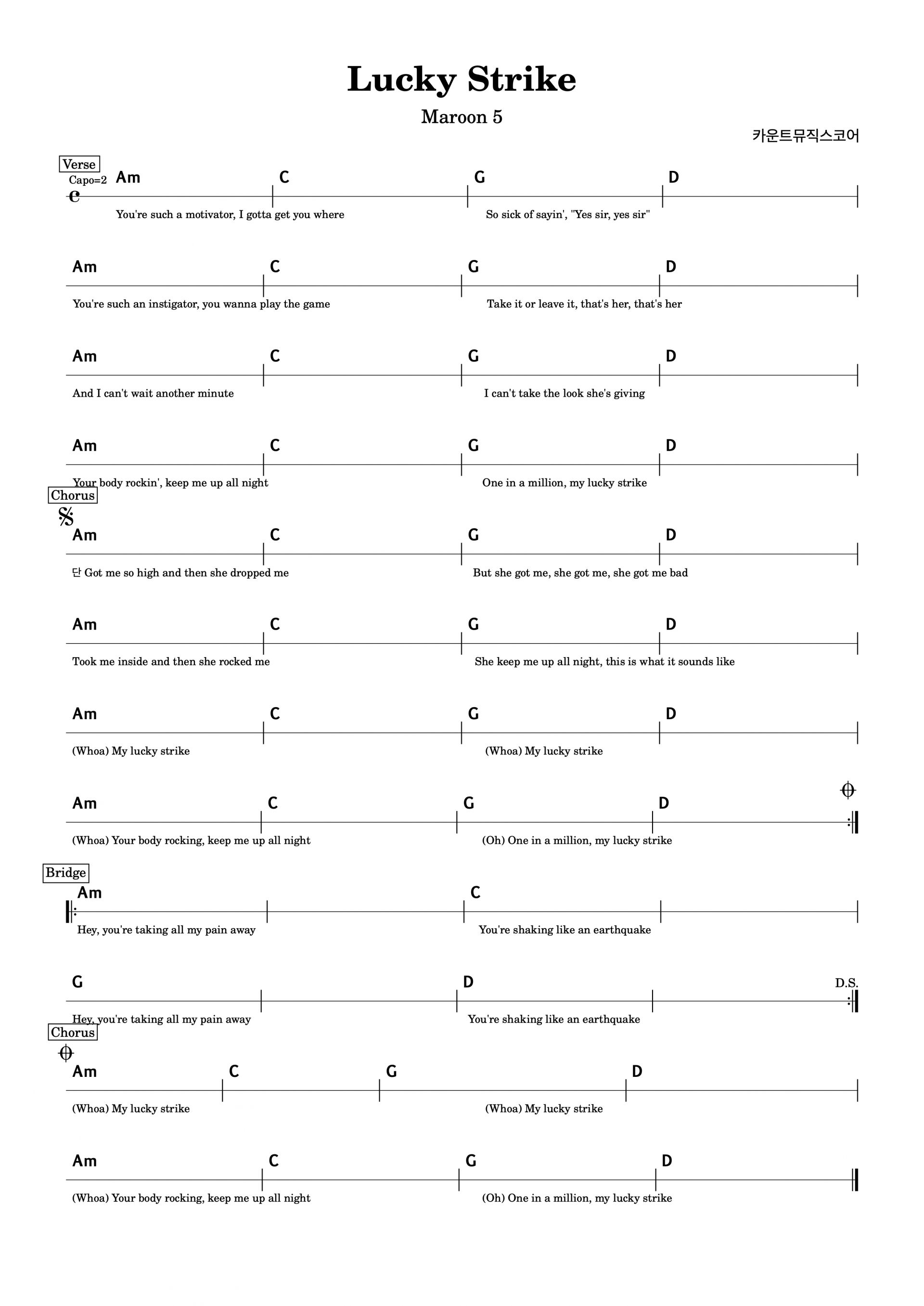 Lucky Strike(럭키스트라이크)-Maroon 5(마룬파이브) 기타코드악보